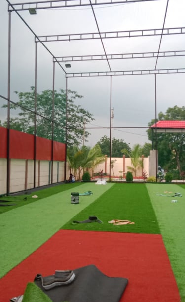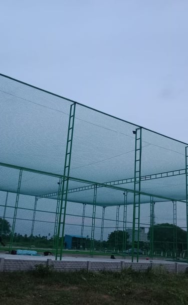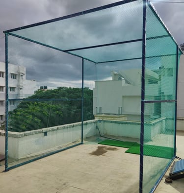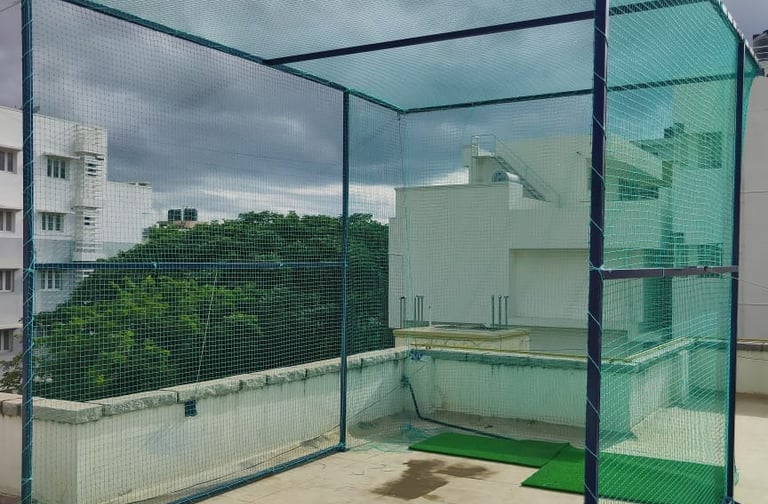 Terrace cricket nets are protective, cage-like structures installed on rooftops or terraces to provide a safe and contained space for cricket practice in limited urban areas. They are made of durable,